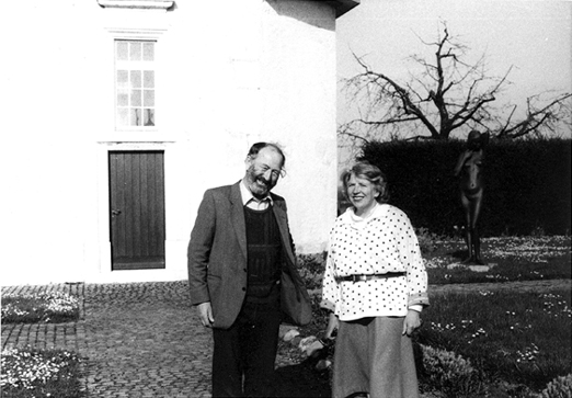 Adolf und Emmi Weber vor dem Schlössli Vorderbleichenberg in Bibrist, 1988.
