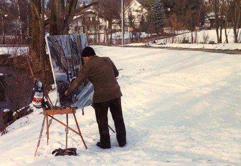 Um 1984. Im Winter am einheimischen Bach, der Wyna.