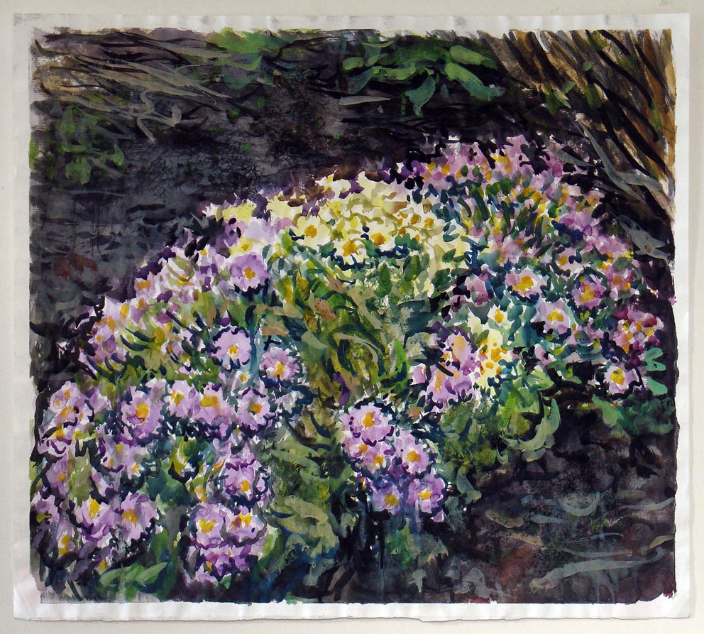 Primelnwiese, Aquarell und Tempera auf Papier, um 1995, 37,5 x 49,8 cm.