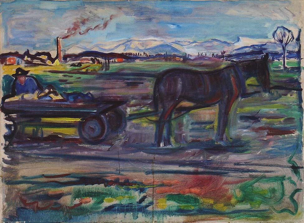 Ross und Wagen und Bergkette